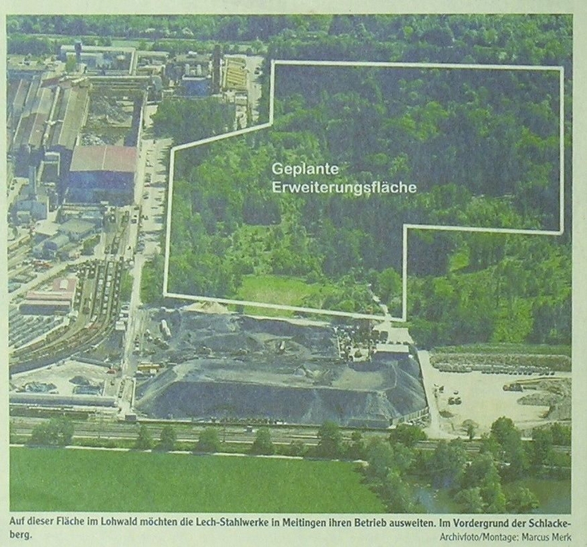 Direkt an der Lebensader Schwabens – dem Lech – und vor den Toren Augsburgs liegt der Lohwald bei Meitingen. Der ca. 40 Hektar große Bannwald liegt in direkter Nachbarschaft zu den Lechstahlwerke. Und dies wird nun vielleicht rund 40 % der Gesamtwaldfläche zum Verhängnis werden, da sie einer Erweiterung des Werks zum Opfer fallen sollen. Dabei führt der Lowi so wichtige Funktionen aus: Er ist heute Immissionsschutzwald, da er Feinstäube und Luftschadstoffe filtert. Er ist Klimaschutzwald, da er wie alle Wälder als Kohlestoffspeicher eine wichtige Rolle im globalen Klimaschutz spielt. Er ist Biotopwald, viele Tier- und Pflanzenarten sind auf ihn angewiesen, womit er sich auch aufgrund seiner großen Artenvielfalt auszeichnet. Er ist als Teil der ehemaligen und fast verschwundenen Lech-Auenwälder auch Landschaftschutzwald. Und letztlich ist er auch einer der wenigen Erholungswälder für die Bewohner*innen der nördlichen Lechebene…