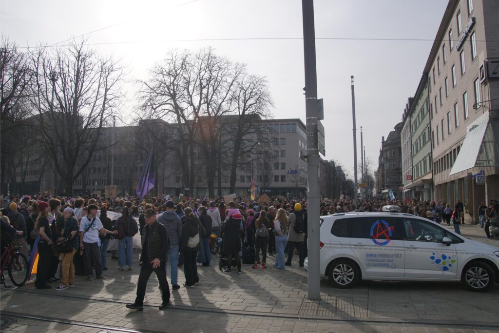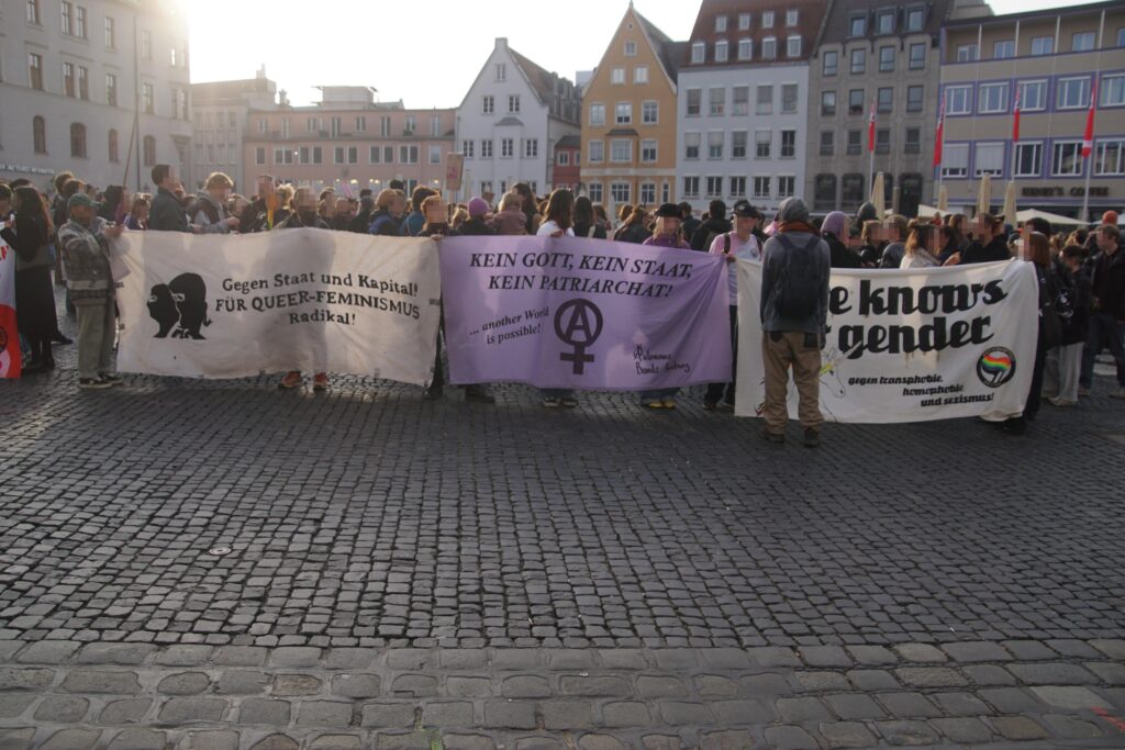 Diesen Sonntag zogen wir als große lautstarke Demonstration zum feministischen Kampftag durch die Augsburger Innenstadt. Über 2000 Menschen aller Geschlechter von jung bis alt nahmen daran teil und gaben ihrer Wut auf unser patriarchales System freien Lauf.